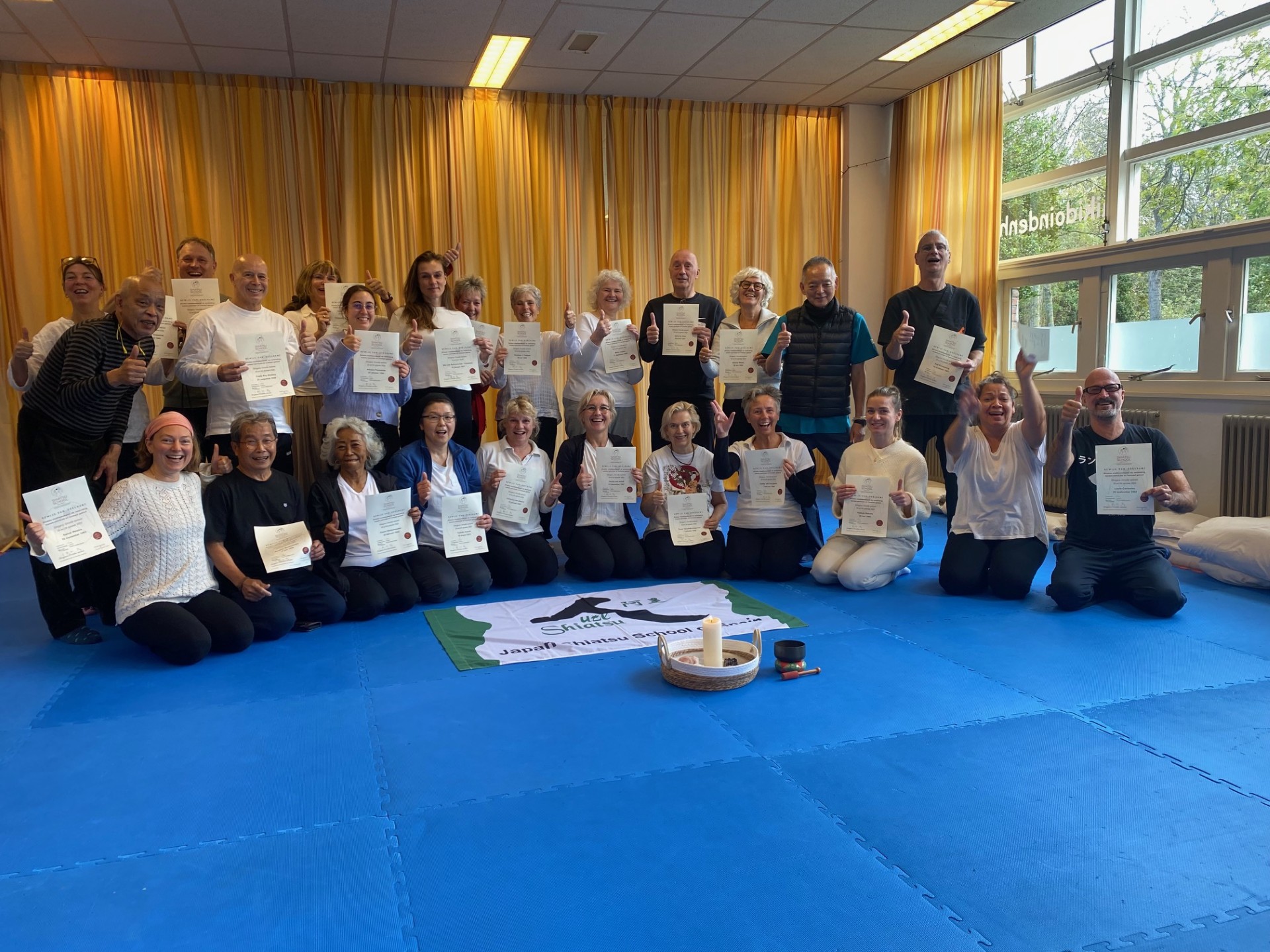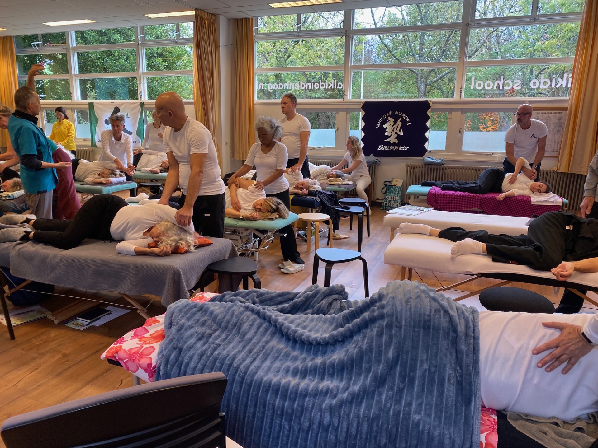 2日間の講習は、あっという間に終了しました。今回も、アムスステルダムのホテル大倉の橘指圧治療院で20年間働いていた、日本指圧専門学校出身の宮本先生が、応援に駆けつけてくれました。